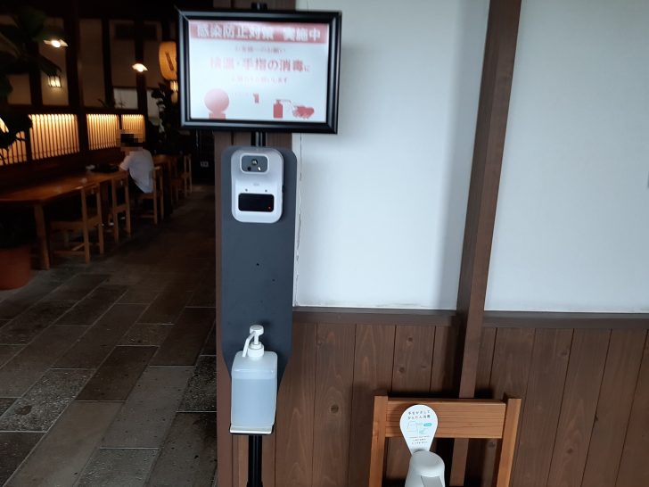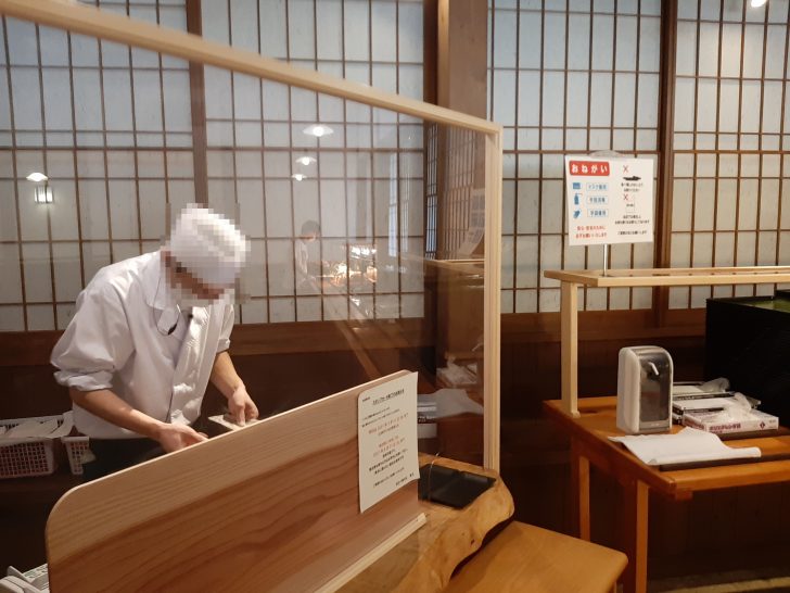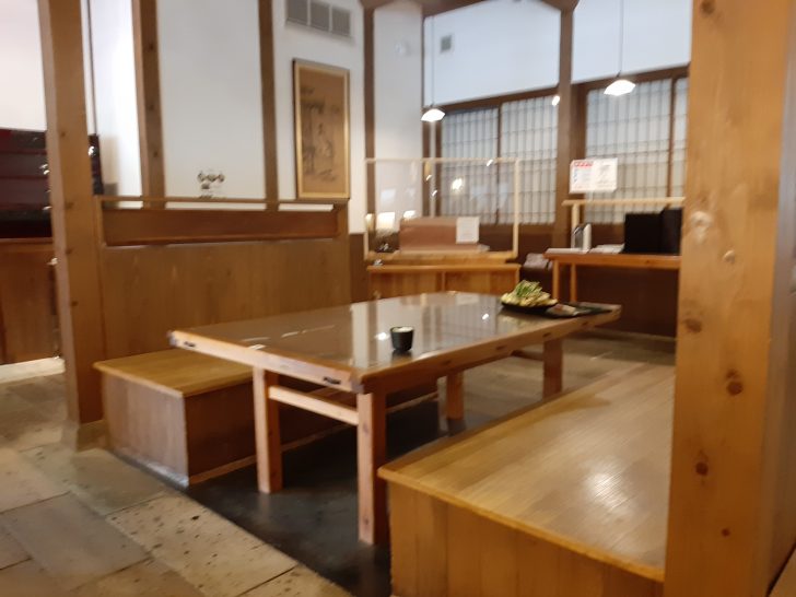 お店の入口がこちらに変更になっていました。この入口付近に洗面台があって、お客さんが手洗いをするようになっています。入口を入ったすぐの処にも、テーブル席がありました。ここだと換気の必要がないので、コロナ感染も防止できますね。