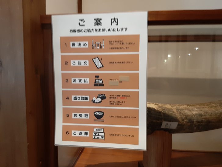セルフサービスの方法のご案内がこちらです。お店の方がいて、説明してくれます。最初に席決めをします。