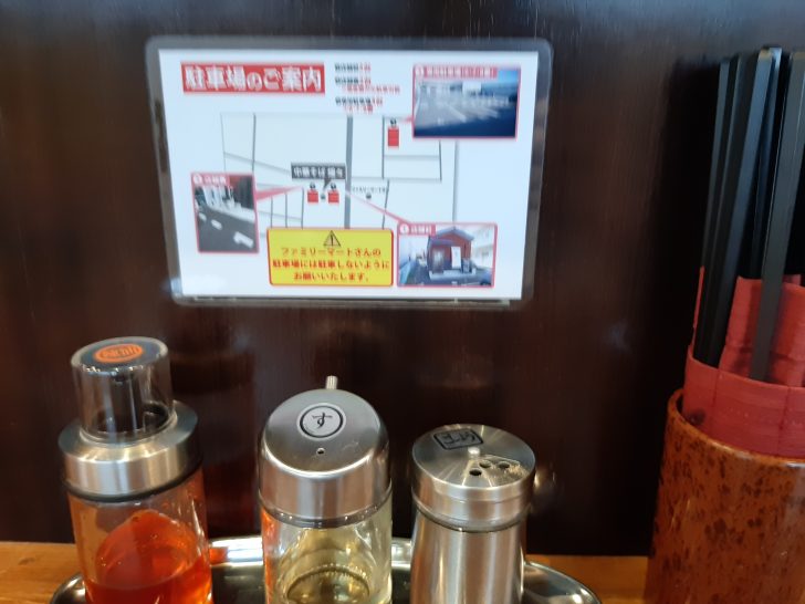 駐車場は、店舗前2台分、店舗裏2台分、それと店舗の道路を挟んで向かい側に専用駐車場が3台分の合計7台分あります。