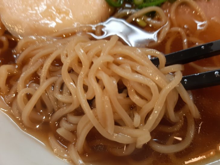 麺は小麦の風味を感じるストレートの中細麺で、食感が良くてコシもあり、美味しい麺ですね。スープにも良く絡みますね。