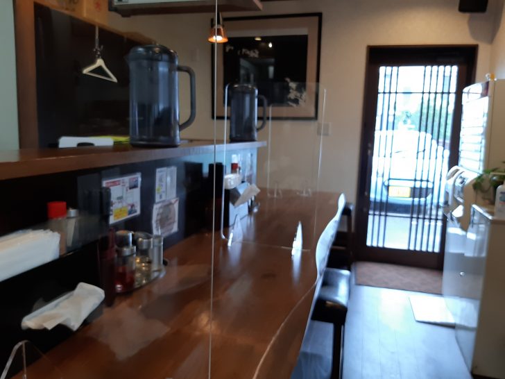 席はカンターのみの7席のみです。隣の席とは、アクリル板で仕切られていて、コロナ感染防止対策も万全ですね。