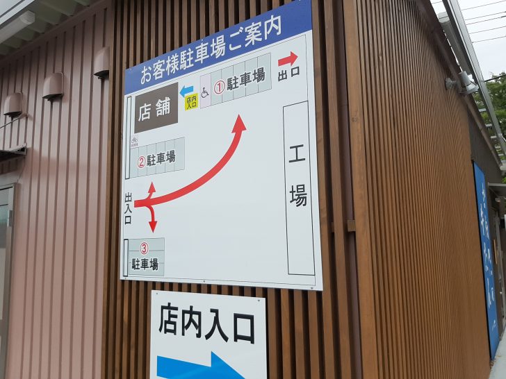 道路沿いには、工場直売店の看板があって分かり易いですね。