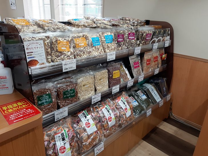 『カネタ』では、ナッツ各種、豆菓子、カルパス、いか珍味、海苔等も製造していて、格安の直売価格で販売されています。