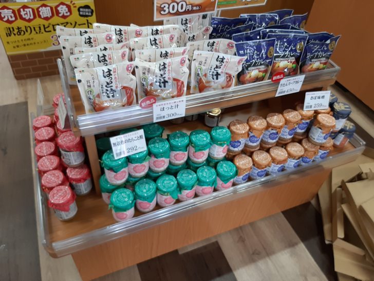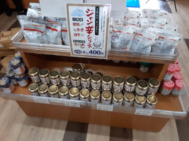 焼きさば、鮭、かつお、牡蠣、ほや等の瓶詰め珍味も、色々な種類がありました。
