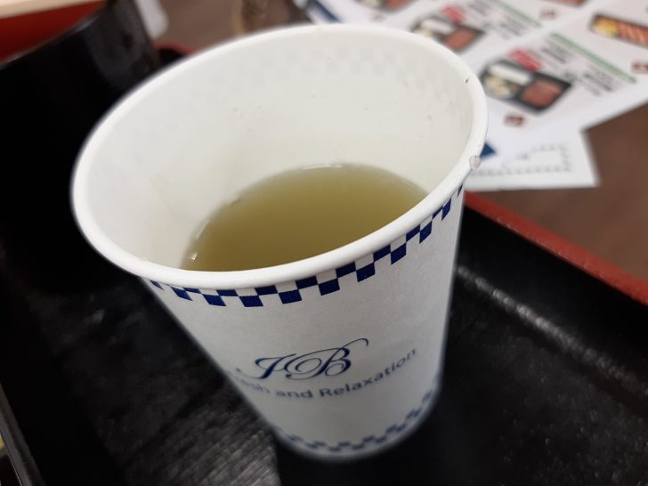 お茶は、温と冷があり、給茶器でセルフサービスとなっています。食べ終わったら、返却口へ返却します。