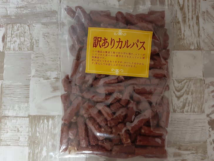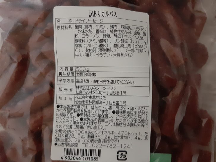 この訳ありカルパスは500gも入っていて500円(税込)と超お得です。工場直売所ならではですね。