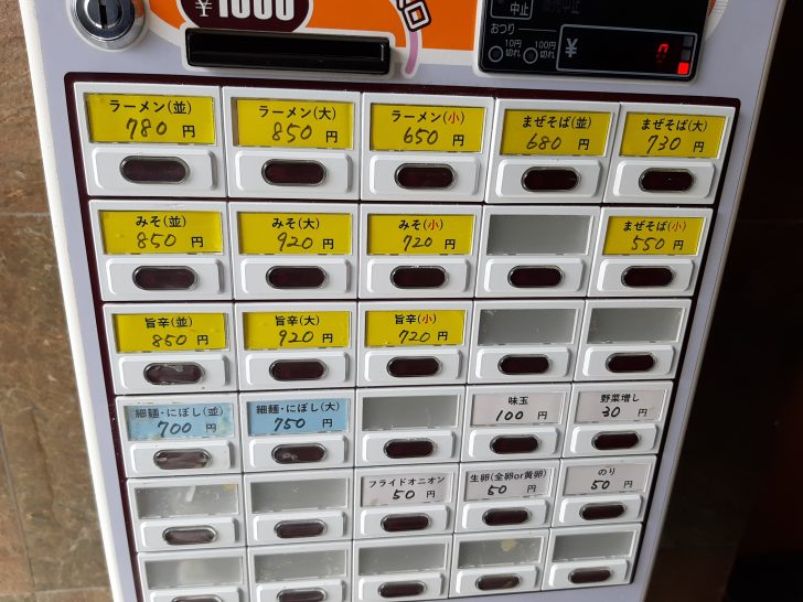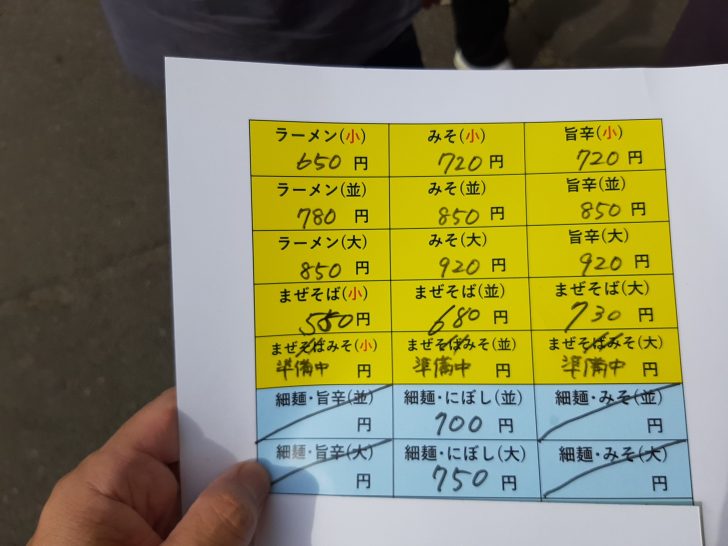 ・ラーメン(小) 650円、ラーメン(並) 780円、ラーメン(大) 850円