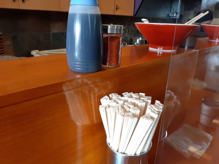 冷水は、お店の奥にあるサーバーでのセルフサービスとなっています。また、レンゲもここに置いてありましたが、何故?思ったのですが、ラーメンが着丼した際に、店主さんに、レンゲはあちらにありますと言われました。レンゲのセルフサービスというのは初めての経験でしたね。これは、カウンターに置いてあった方が良いと思います。