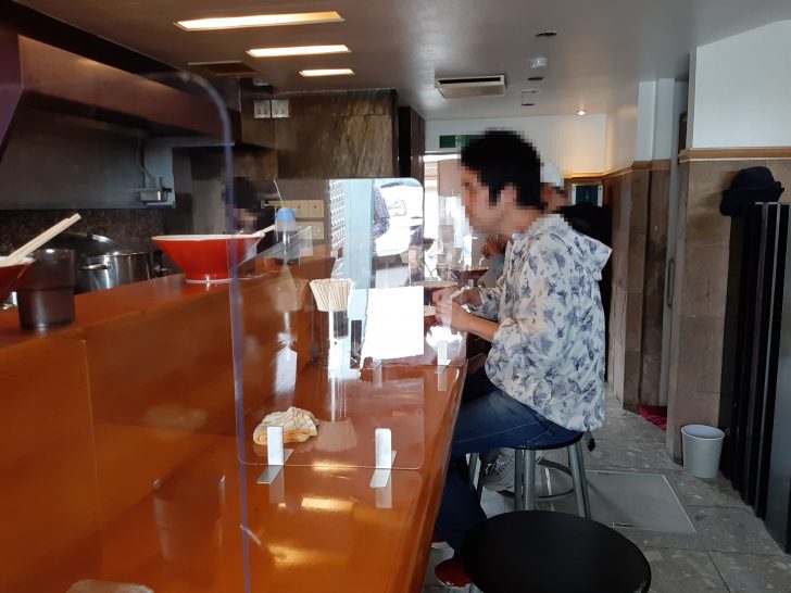 カウンターは6席あります。コロナ感染防止対策のアクリル仕切板は設置されていました。