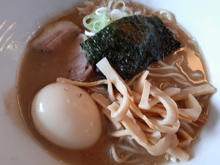 スープは「にぼし」が効いていて、それに動物系がプラスされている?にぼし醤油味で美味しかったです。私の好きなタイプでした。