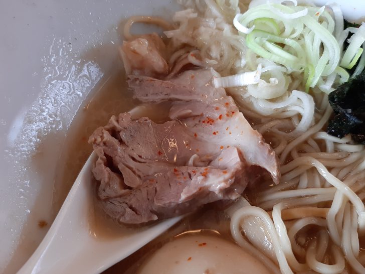 チャーシューは小さめ1枚ですが、厚さがあり、味付けも良く、ほろほろとして美味しかったです。