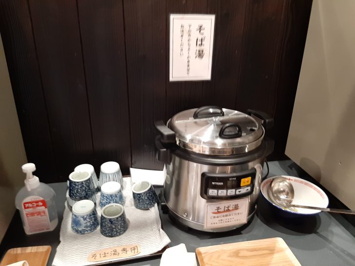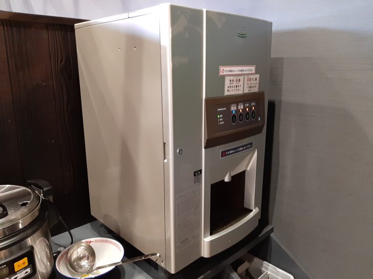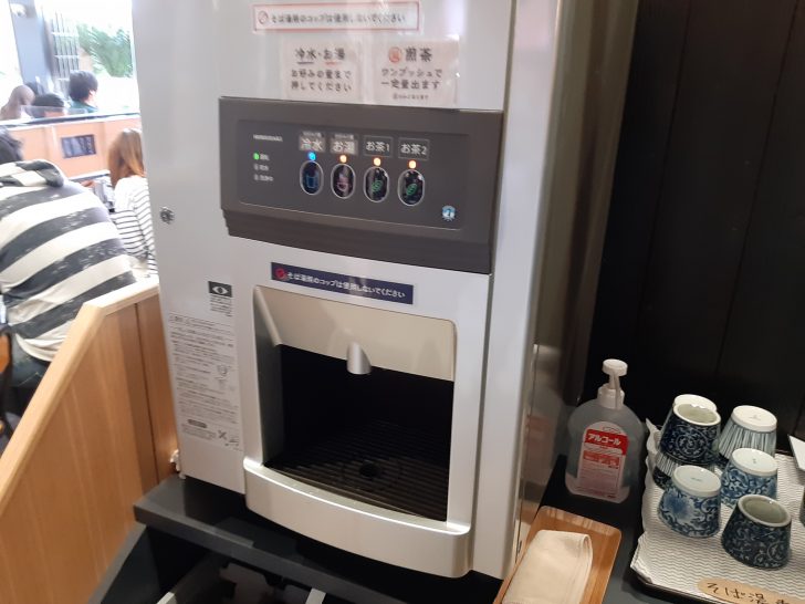 お店の奥に、冷水、お湯、お茶のサバーがあります。これもセルフですね。