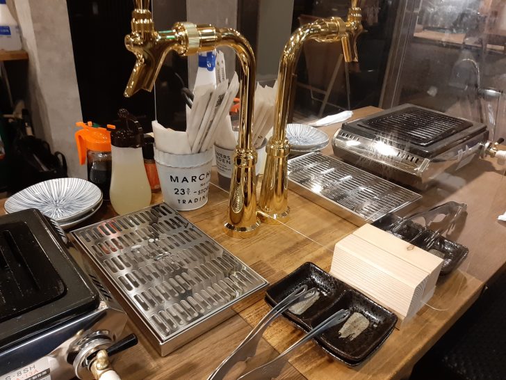 生ビールを2杯飲んでから、卓上レモンサワーにしました。テーブルに設置された蛇口からレモンサワーを注ぎ放題で飲み放題が楽しめます。