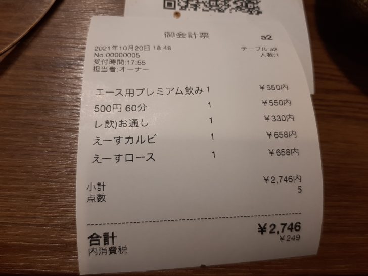 レモンサワーを飲み過ぎて、満腹になってしまったので、今日はこれでお愛想にしました。結局、ちょい呑みの範囲を超えて【¥2,746(税込)】にもなってしまいました。