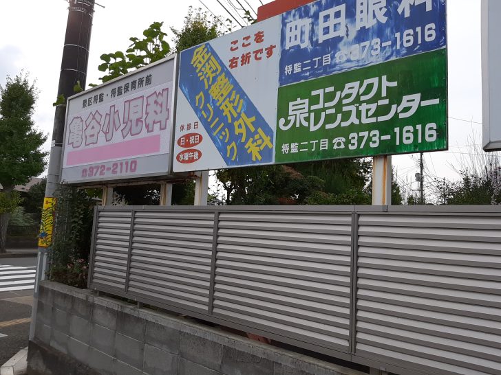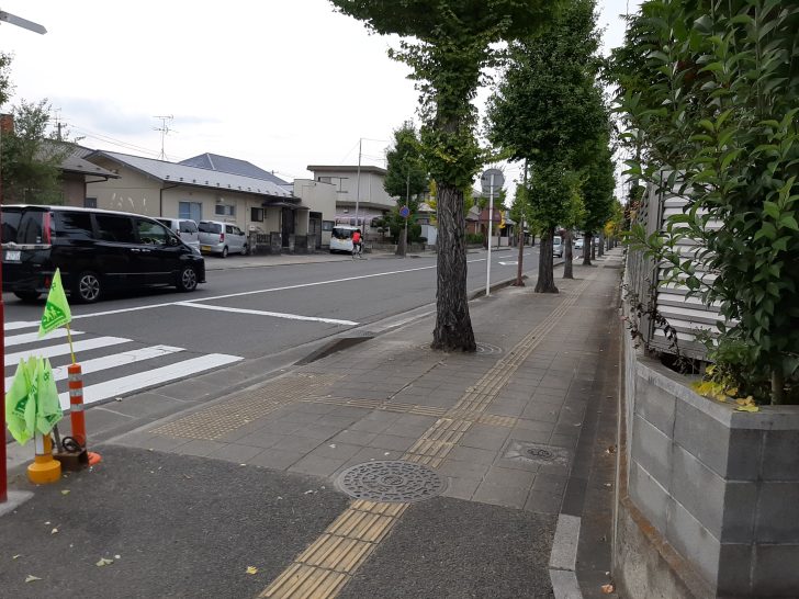 お店は左側の角にあります。またこの通りをまっすぐ進むと金渕整形外科があります。