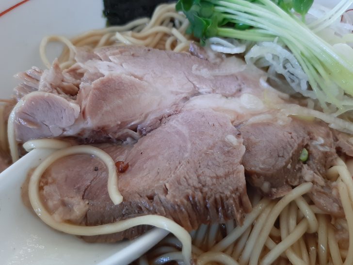 チャーシューは1枚ですが、分厚くて、ホロホロと柔らかく、味付けも良くとっても美味しいです。絶品です。