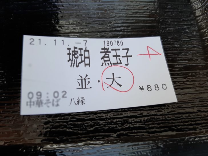 他の方の口コミでも自動券売機のメニューが多くて迷ってしまうようですが、初訪問なので、今回は、やはり人気NO1の琥珀醤油にしました。