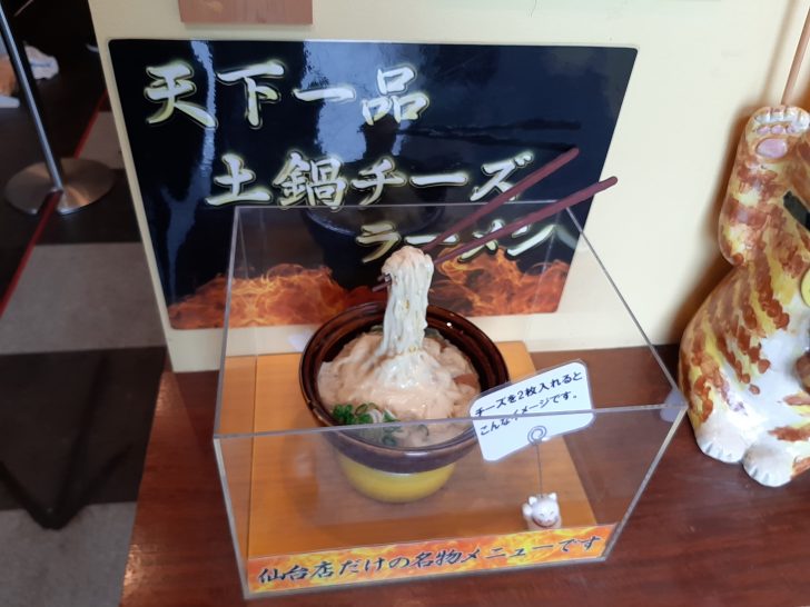 入店するとすぐに「土鍋チーズラーメン」のレプリカが設置されていました。美味しそうですね。
