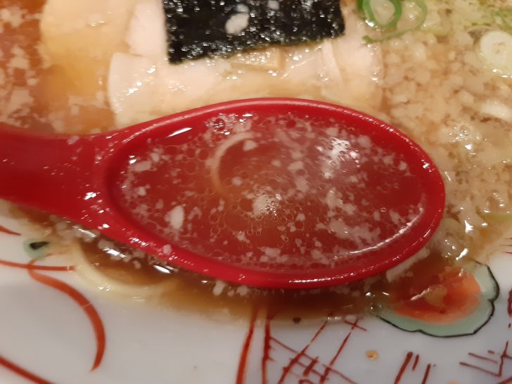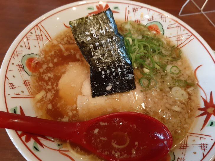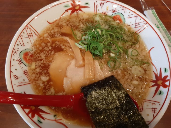 私が注文したのは、「和だしラーメン」です。具材はチャーシュー2枚、メンマ、ネギ、のり、豚背脂ですね。