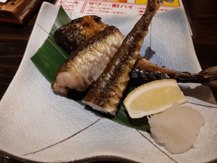 4品目は、名物のろばた焼き盛りです。何の魚か提供された時に説明されたのですが忘れてしまいました。金華サバ?とサンマだったような気がします。とにかくこれも激うまでした。