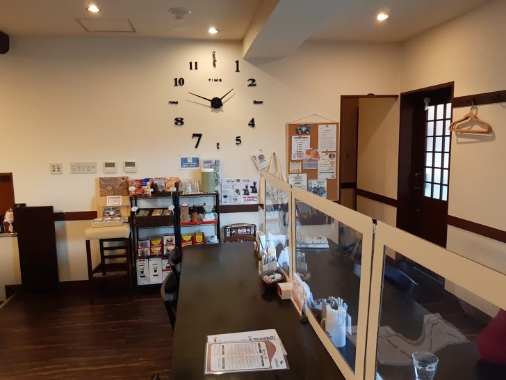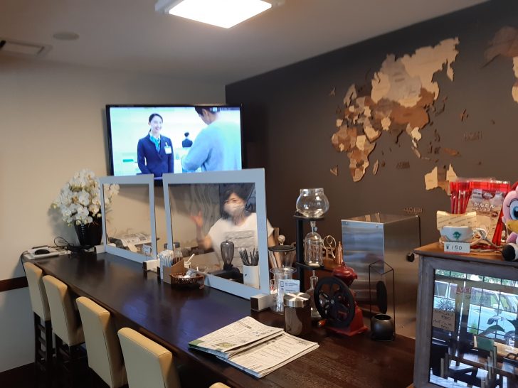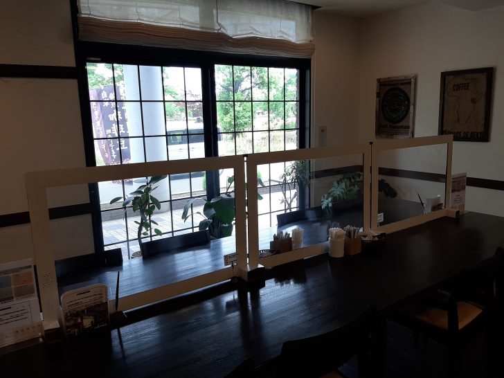店舗の内観はとっても凝っていて、お洒落なお店になっていますね。消毒薬、仕切板の設置などり新型コロナ感染防止対策もバッチリ行われています。