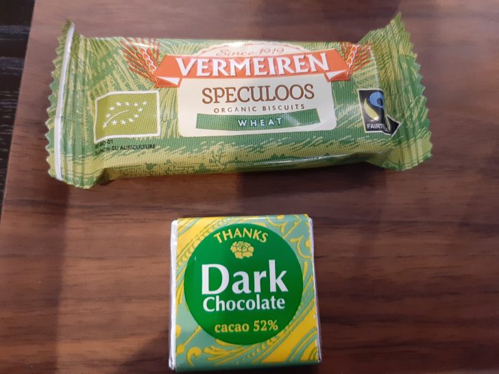 無料のホットコーヒーを頂きました。銘柄はせんだいブレンドです。今回購入した珈琲豆と同じですが、とっても美味しいですね。コーヒーにはお菓子が付いて来るのが嬉しいですね。今回は「カラメルビスケット」と「ダークチョコレート」でした。コーヒーにとても合います。