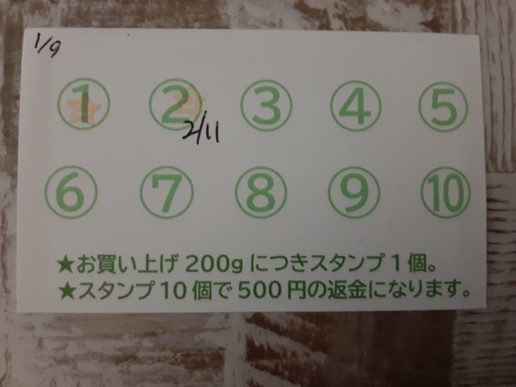 この日は、2個(400g)購入したので、スタンプは2個貰えました。