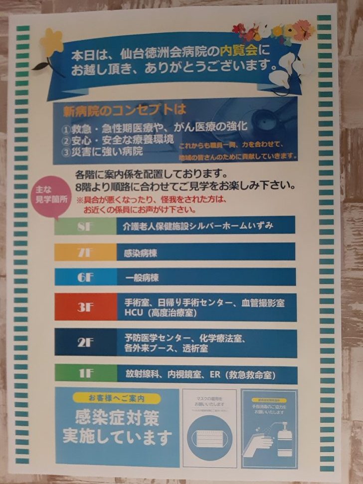 自宅近くにこのように素晴らしい病院ができるというのは、とっても嬉しいです。できれば、病院に行かなくてすめば良いのですが、高齢の親も同居中で、自分も還暦を越えているし、娘に子供が生まれたりと、今後は病院に行く機会が増えるものと思いますが、近くに『仙台徳洲会病院』があれば安心できますね。4月1日の移転オープンまでは大変でしょうが無事に移転できるようにお祈り致します。また、『仙台徳洲会病院』の関係者の方を含めた、コロナ禍の大変な中で、ご苦労されている医療従事者の方に感謝したいと思います。