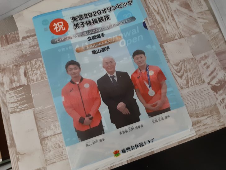 なんと2020東京オリンピック男子体操で活躍した北園選手と亀山選手のクリアファイルも頂きました。この2人は徳洲会体操クラブ所属だったのですね。