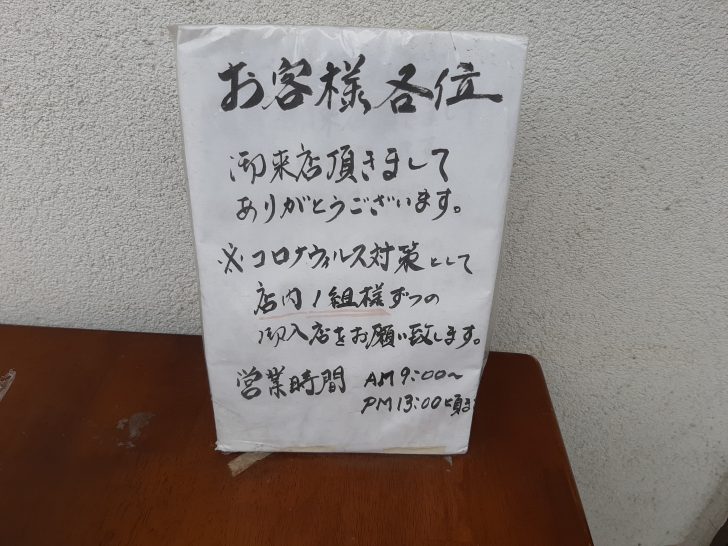 コロナ感染防止でお店に入店できるのは、1組ずつになります。
