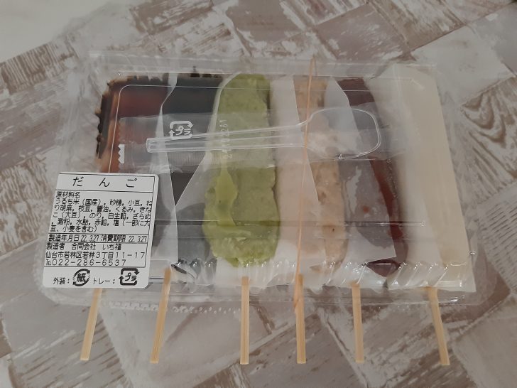 売切れだった焼きを除く6種類のだんごを購入。すべての餡がたっぷり過ぎる位つけてありました。これで、この値段(97円税込)なんてありえないですね。