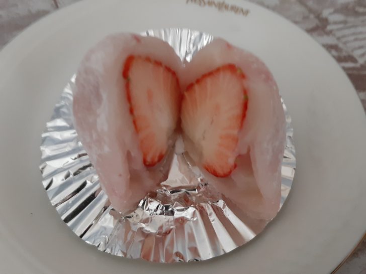 いちご大福は、そんなに大きくないのですが、いちごの甘さが半端なかったですね。