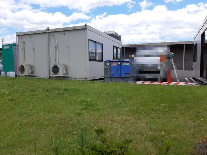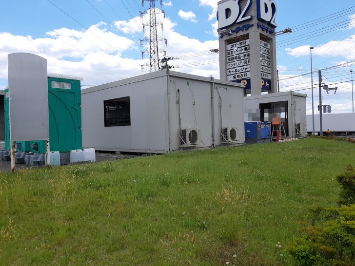 『ジャパンミート生鮮館 仙台市名坂店』の工事用と思われる、プレハブの現場事務所が、駐車場に設置されていました。