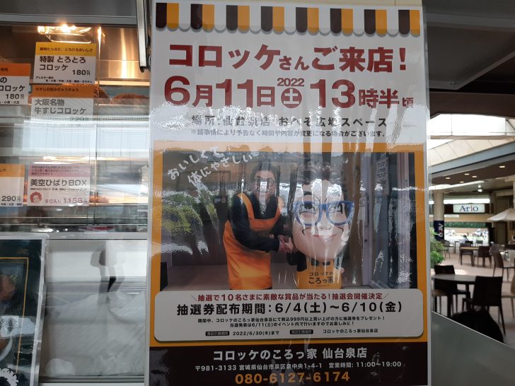お笑いタレントの『コロッケさん』が、6/11(土) 13:30頃に来店されるようです。この時に抽選で10名様に素敵な商品が当たる抽選会が開催されるようです。