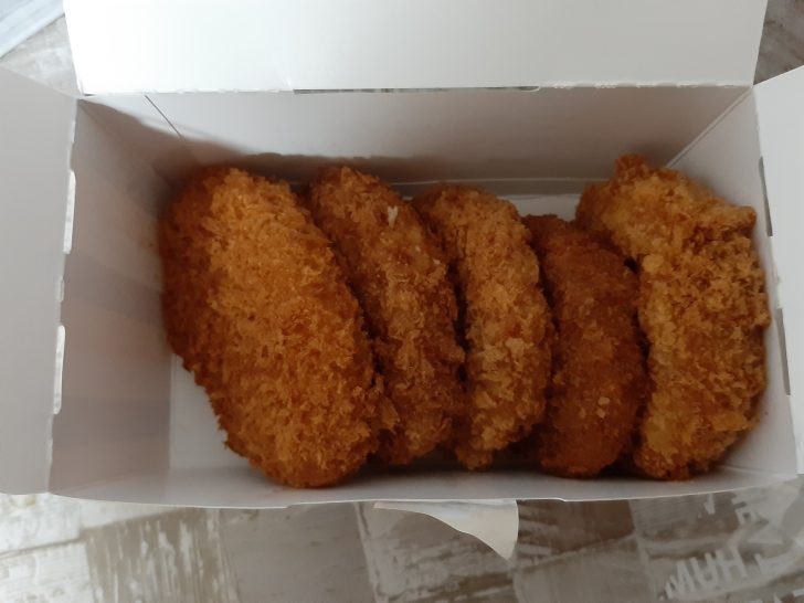 「ころっ家バラエティセット」は、特製ビーフコロッケ、特製ジューシーメンチカツ、特製とろとろコロッケ、大阪名物牛すじコロッケ、かぼちゃのドーナツコロッケが入っています。これにおさつコロッケ(衣に黒ゴマが入っているもの)を加えた合計6個です。