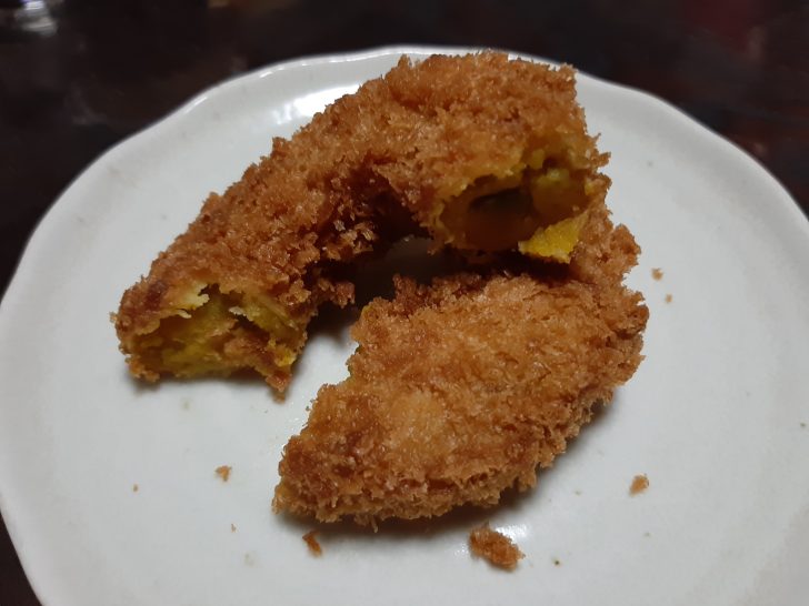 これがかぼちゃのドーナツコロッケですが、かぼちゃが美味しかったですね。