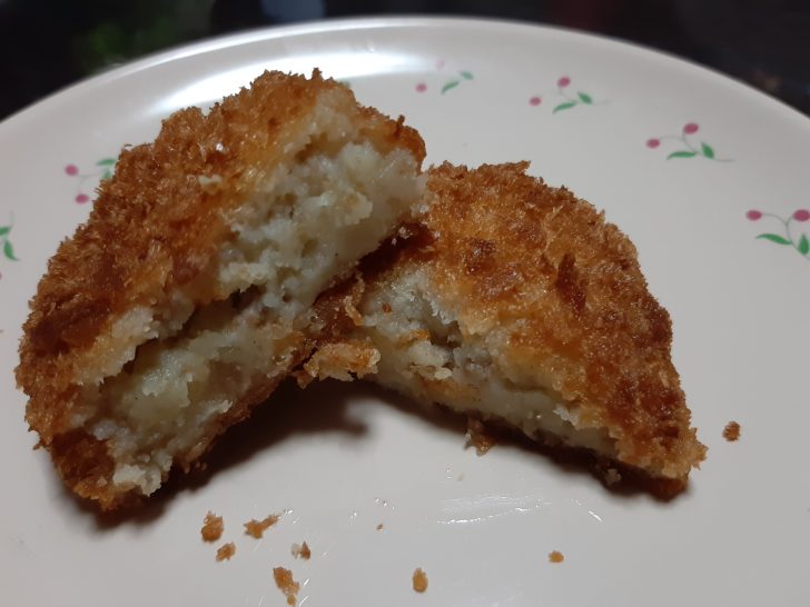 これが大阪名物牛すじコロッケですね。牛すじが少ないようで、入っているのが分からないほどでした。