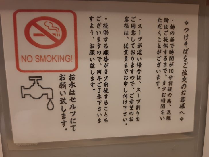 つけそばの麺は茹でるのに10分程度の時間が掛かるようなので、混雑時には提供までの時間が掛かるようです。