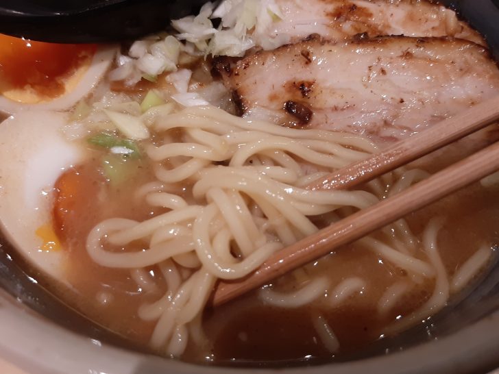 スープは魚介の香りと風味が強く感じられる濃厚魚介豚骨スープで美味しかったのですが、兎に角しょっぱ過ぎると感じました。開店直後で安定していないのか、これが本来の味なのかは分かりませんが、そこがとても気になりましたね。