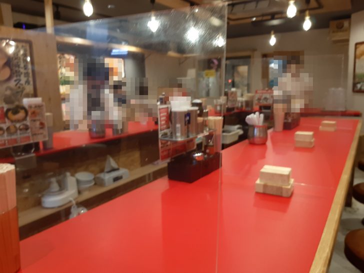 店内はカウンター13席とテーブル席8席の21席です。カウンターは席毎にアクリルの仕切板が設置されていますので、コロナ対策は万全ですね。