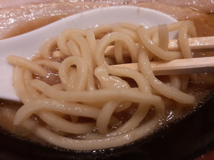 麺はお店自慢の逆切り麺とのことですが、逆切りが良いのかは良く分かりませんが。ぷりぷりもちもちの太麺は美味しいですね。