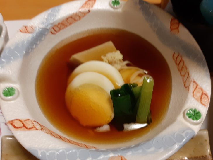 ごま豆腐あんかけには、ゆで卵とチンゲン菜なども入っていました。懐かしい味でした。