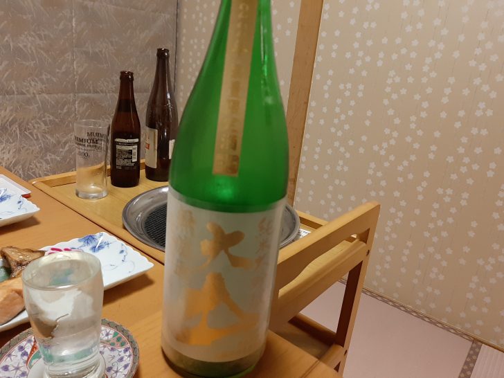 まずは、瓶ビールで乾杯。次は『本日のおすすめ日本酒』【660円】を注文したのですが、なんと出てきたのは、地酒の「大山 純米大吟醸」でした。