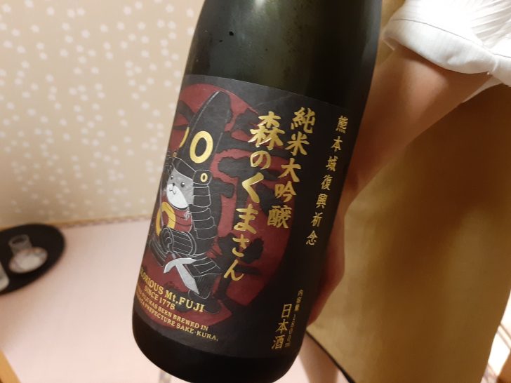 お替りの日本酒は『本日のおすすめ日本酒』【660円】を注文したのですが、なんと熊本のお酒でした。なんと熊本城復興祈念の純米大吟醸『森のくまさん』でした。これも美味しいです。