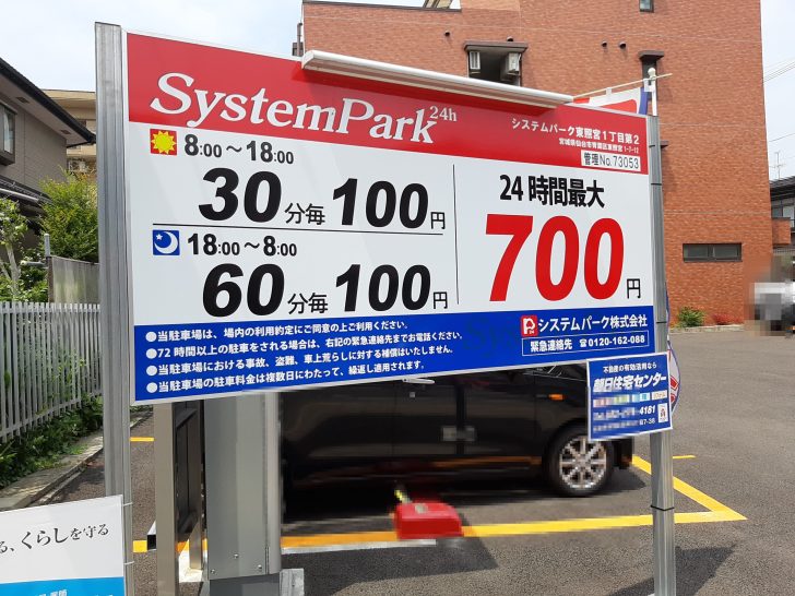駐車料金は、日中は30分毎に100円となっています。ただ駐車台数が7台分しかありません。この日は、土曜日の13:00頃ですが、1台分しか空いていませんでした。