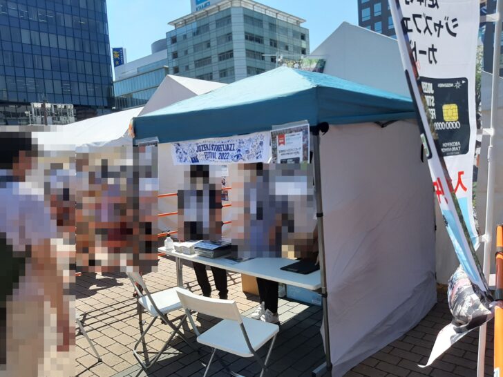 定禅寺ジャズフェス2022のメイン会場【勾当台公園市民広場ステージ】入場口の右側に日専連の定禅寺ジャズフェスカードの入会受付ブースが出店していました。ここで入会すると特典が色々あるというのにつられて、入会手続きを行いました。