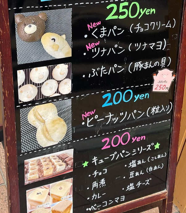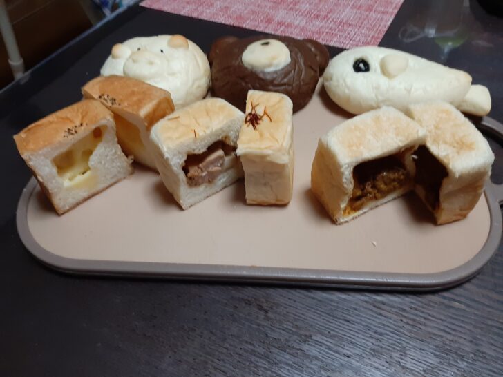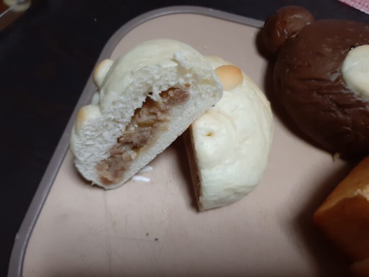 豚の顔をしたぶたパンは、あまり可愛くないですが、豚まんの具が入ったパンで、具もパンも美味しいです。