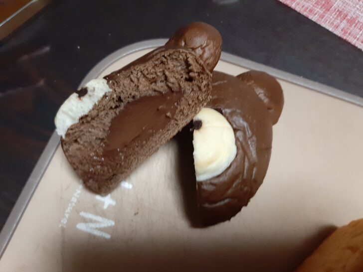 くまパンはパンもチョコレート色と白のツートンカラーで可愛い見た目ですが、濃厚なチョコクリームが大変美味しいです。