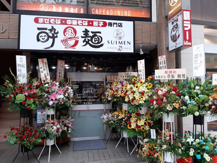 中華料理『酔拳』の系列店のラーメン専門店『酔麺』が、仙台市青葉区一番町のフォーラスの隣(以前はこわめしやがあった所)に、2022年9月23日にオープンしました。さっそく行ってきたので紹介します。