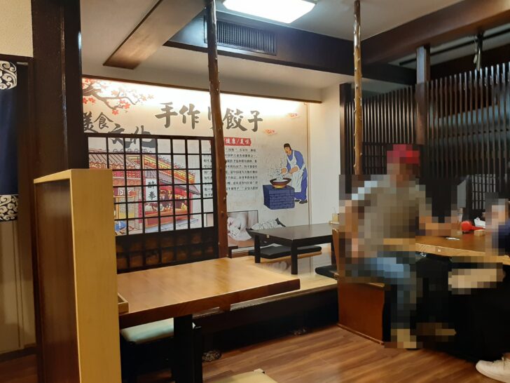 2人掛テーブル席2卓、4人掛テーブル席2卓、奥には4人座敷席2卓があります。